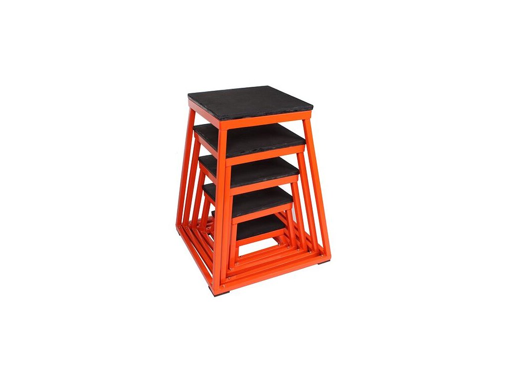 Plyometric exercises develop explosive and dynamic strength. Our Merco plyo boxes are also used for this exercise, where you try to improve your speed, strength and endurance with the help of jumps in a minimal time. This training aid is suitable for a wide range of athletes such as hockey players, football players, athletes, tennis players, volleyball players, basketball players and others. Thanks to the Plyo Bench set, you get five different "plyo box" stools, so you can also adjust the difficulty of your exercise. The construction is made of welded steel with an upper surface and lower corners made of rubber. Merco Plyo Bench plyometric steps will help you improve your physical condition during training at home or in the team. If you want to make your training more difficult, you can exercise not only with your own weight, but also add a medicine ball from our offer: Medicine balls plyo box / height / bottom dimension / top dimension / weight 1. 16 cm / 30 x 30 cm / 28 x 28 cm / 5.2 kg 2. 31 cm / 38 x 38 cm / 33 x 33 cm / 6.8 kg 3. 46 cm / 46 x 46 cm / 36 x 36 cm / 8 kg 4. 61 cm / 53 x 53 cm / 38 x 38 cm / 9 kg 5. 77 cm / 62 x 62 cm / 41 x 41 cm / 10.2 kgAdditional parameters