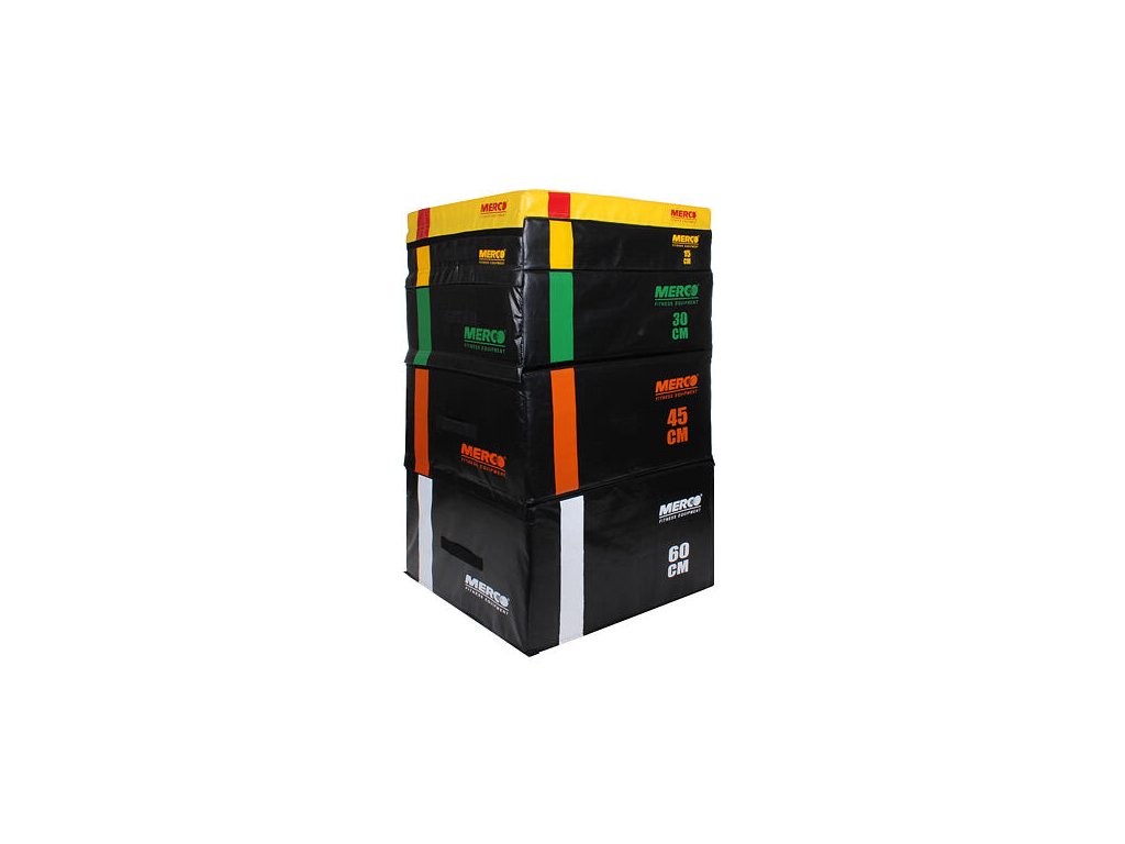 Plyometric exercises are not only popular among sprinters, jumpers and other athletes, but also among fighters of various combat sports and fans of modern parkour. Indeed, plyometric exercises help to develop the dynamics of movement by stimulating the muscles to explosively move quickly. During plyometric exercises, the muscles develop the maximum possible energy in the shortest possible time. The Merco Plyo Box set provides you with both a springboard and a landing surface for plyometric training and offers a safe alternative to various steps and boxes. Plyo Box plyometric blocks are made of compressed PE foam coated with a strong, waterproof coating. Due to the material used, the individual blocks of the set are easy to handle, and thanks to the 4 cm wide velcro along the edges, you can simply connect them together so that they stay compactly on each other during the exercise. In addition to secure stability, bulky plyometric blocks offer adjustment variability. A set of five blocks of different heights with the same base can be used individually or combined with each other to adjust the performance level as needed. The Merco Plyo Box set is a great addition to club and school gyms to enrich training programs, as exercises with the Plyo Box will develop the potential of not only a lightning start and jump, but also a momentary lift of larger loads. Parameters: - Each of the five blocks has a base with dimensions of 90 x 75 cm and different heights: 8 cm, 15 cm, 30 cm, 45 cm and 60 cm. - In addition to the height, the weight of the individual blocks is also different: 2 kg, 3 kg, 5 kg, 7 kg and 9 kg. - The weight of the whole set is therefore 26 kg. - Due to the dimensions, the entire Plyo Box is divided into 3 packages.Additional parameters
