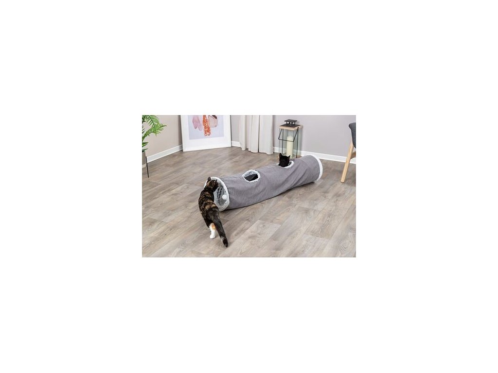 HARVEY plush cat tunnel with toys, 4 entrances, 27 x 116 cm, gray