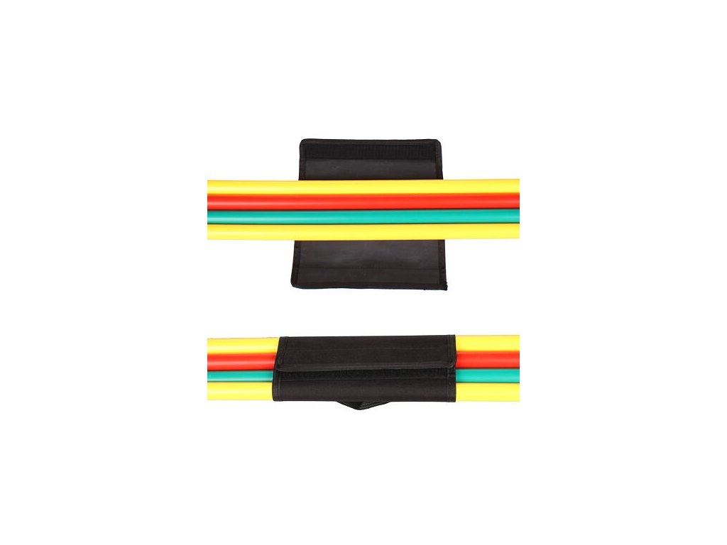 Practical belt with loop and velcro closure for plastic obstacles (Merco Skip, Merco Speed, Merco Quick Return, etc.). This tightening strap made of durable polyester is suitable for plastic obstacles with a diameter of 2 cm, which can hold 6 pieces. Thanks to this simple strap, it will no longer be a problem for you to carry or clearly store agility training obstacles.Additional parameters
