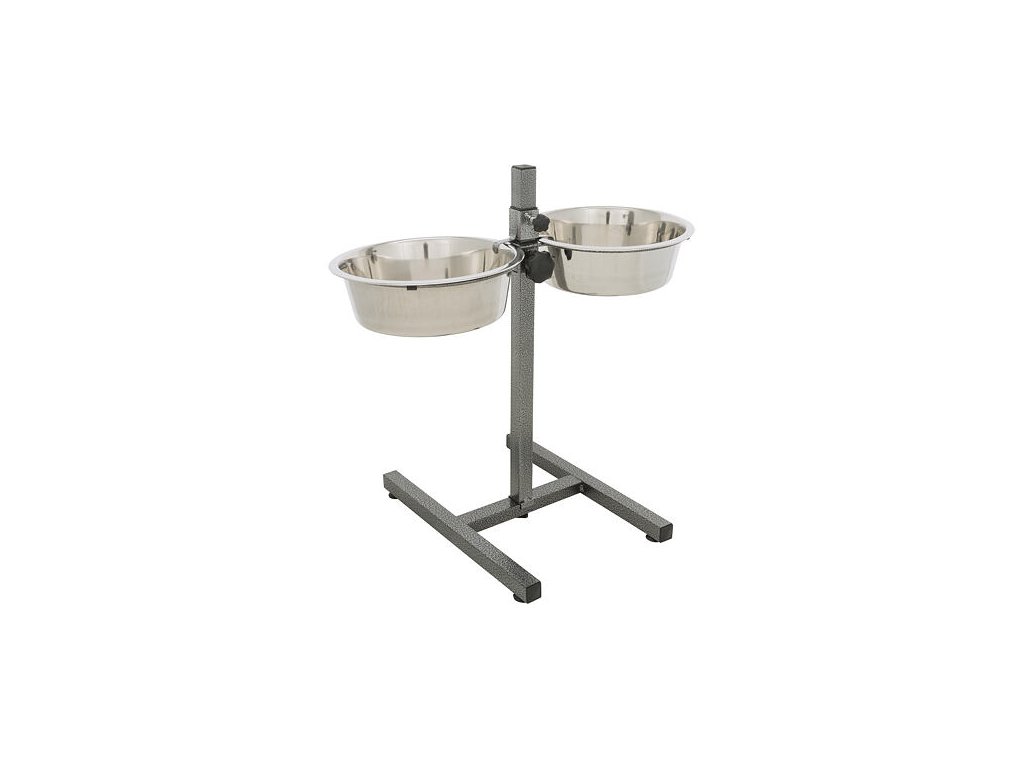 - with 2 height-adjustable stainless steel bowls < li>metal stand with a hammer tone finish
