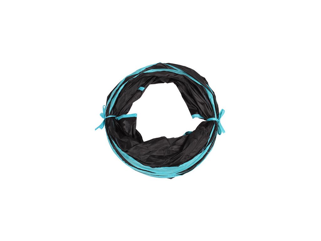 Agility tunnel S Two-way is a great tool for the development of movement activities and interactive entertainment of your four-legged friends. The S-shaped tunnel is 122 cm long. The "sleeve" is 25 cm in diameter and there are two smaller 17 x 9 cm holes on the sides that your pet can also explore. Due to its dimensions, the tunnel is suitable for small breeds of dogs, puppies, cats and domestic rabbits. The tunnel is made of breathable polyester with embedded spiral wire in the wall. It is available in black and blue. The animal toy S Two-way can be taken with you almost anywhere thanks to its consistency and weight of 240 g. You can unfold and fold the tunnel in a few seconds. You will have a lot of fun with your pet with the Y Three-way agility tunnel.Additional parameters