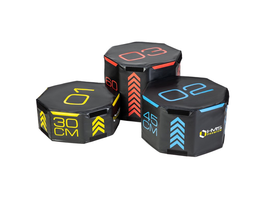 HMS Premium PYOBS01 is a set of three soft, octagonal plyometric boxes of different heights.