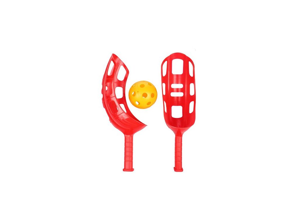 The Merco Scoopcatch Set is an outdoor game à la lacrosse. With this set you will have fun with the whole family and friends. Just like lacrosse, Scoopatch can be played by multiple people or you can play with just two people. This set includes two plastic "shovels" and a catch ball. Enjoy your free time in a fun way in the garden, in the park or on vacation at the beach. - set: 2 "shovels" à la lacrosse + 1 ball - material: plastic - diameter of the ball: 10 cm - total length of the shovel: 40 cm - length of the handle: 10 cm - width of the handle: 3 cm - weight of the set: approx. 220 g - not suitable for children under 3 years oldAdditional parameters