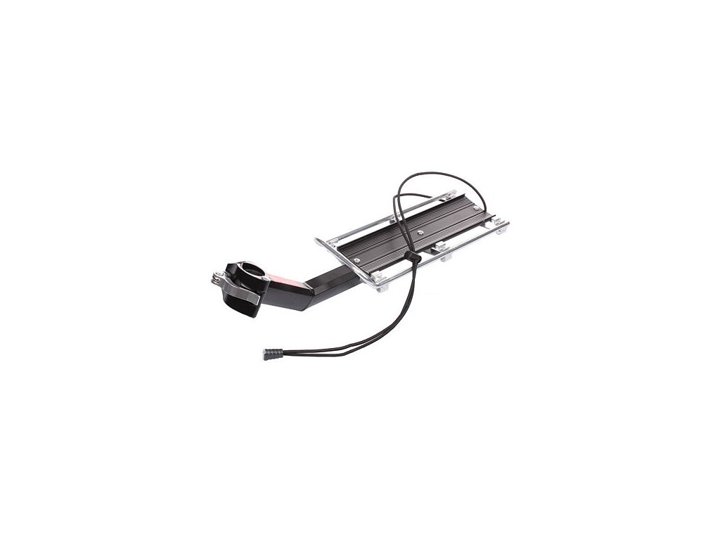 The Merco Shelf aluminum seatpost carrier for the transport of various loads and luggage is primarily intended for bikes that cannot be fitted with a standard carrier under the saddle. For example, if you want to equip a full-suspension bike with a carrier. The structure of the carrier consists of a robust steel beam on which a light aluminum profile with a load area of 30 x 12 cm is riveted. The welded split sleeve with quick release allows for easy mounting of the carrier without the need to remove the seat post from the frame. The shelf carrier can be attached to all seatposts with a diameter of 28 – 38 mm without the use of additional tools. The carrier includes a rubber band and a safety reflector, which you simply slide into the appropriate holder on the back of the carrier. The Merco Shelf carrier is not intended for transporting people. Its maximum load capacity is 9 kg, and the total weight of the all-metal carrier is approximately 600 grams.Additional parameters