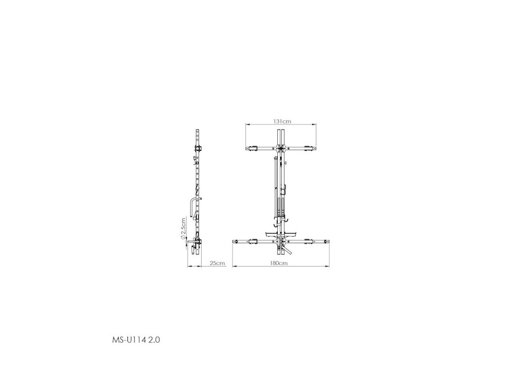 After training, the MS-U114 2.0 training cage can be quickly and conveniently folded to reduce space it occupies, which will undoubtedly be an advantage for those with limited training space. The depth after folding is only 25 centimeters. To assemble, it is necessary to dismantle the crossbar and remove 4 safety pins - one in each joint.