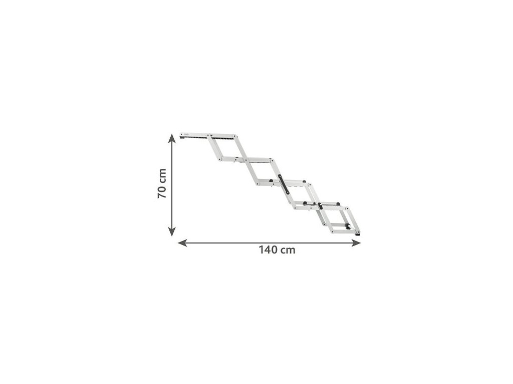 Folding stairs, 4 steps, aluminium/TPR, 37cm width, up to 70cm height, max 160cm, up to 75kg