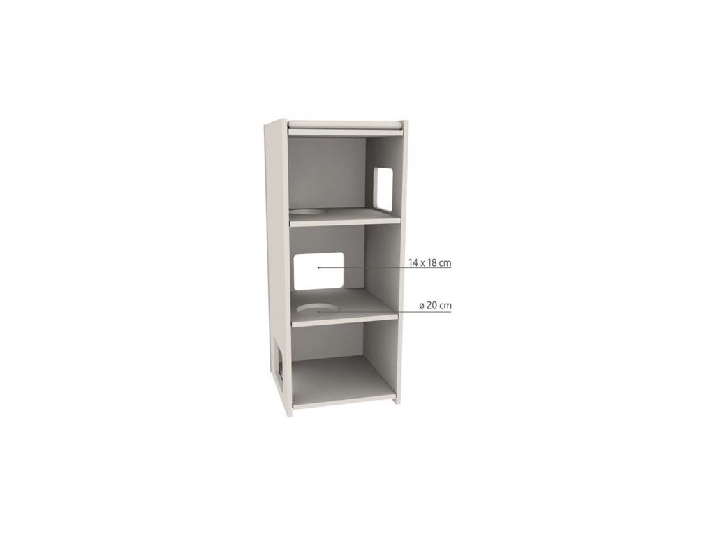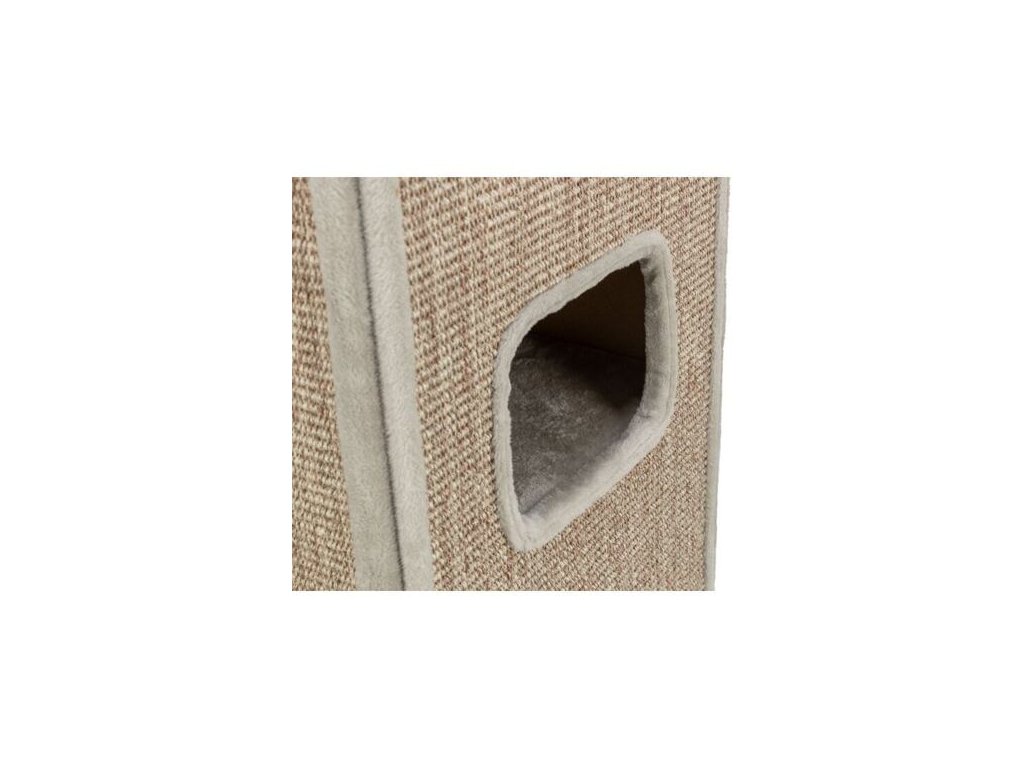 design scratching post in CityStyle made of plywood with wood decor, cave lined with double-sided pillow, bed lined...
