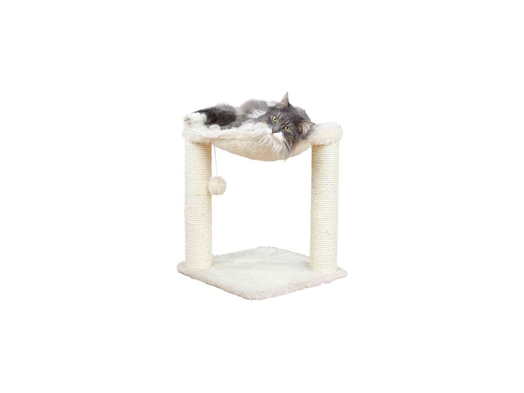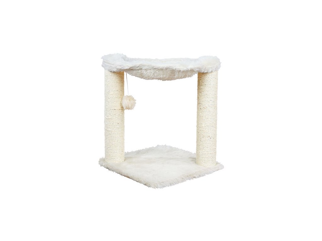 Jute scratching post with removable lid, resting platform and storage space in one.