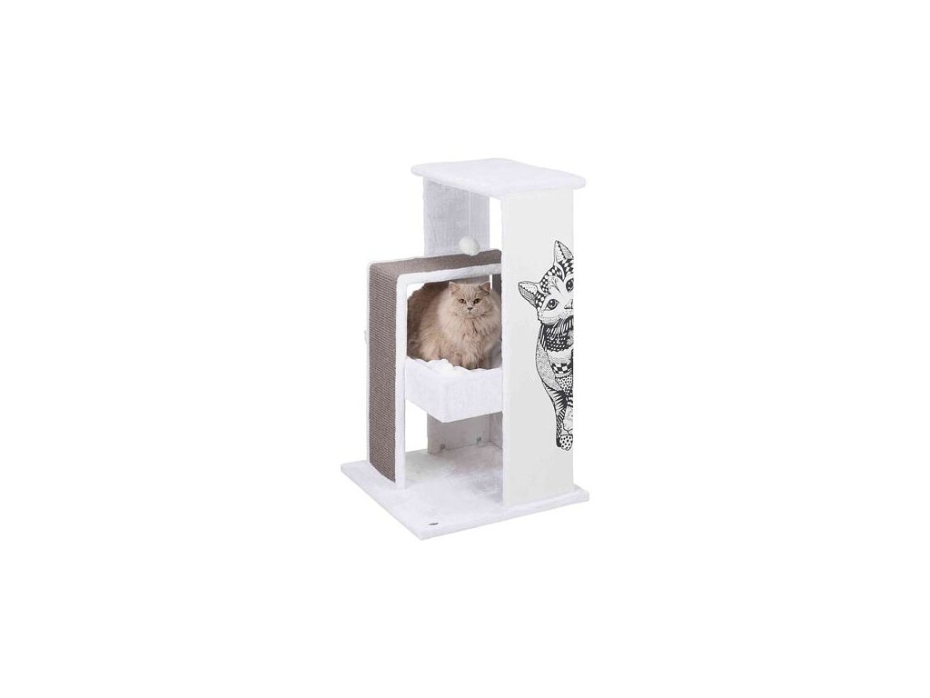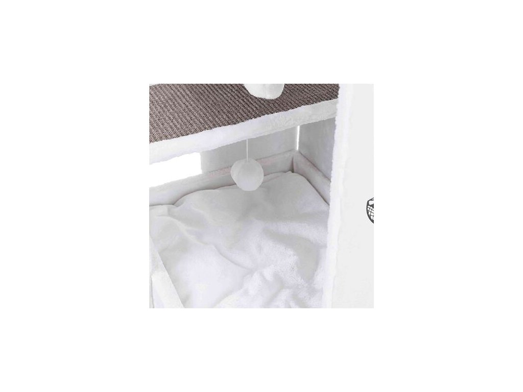 plush covered posts wrapped in jute padded resting place plush/fleece lined cave with string toy material...