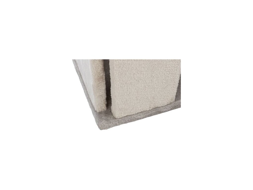 plush covered posts wrapped in jute padded resting place plush/fleece lined cave with string toy material...