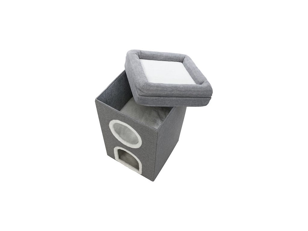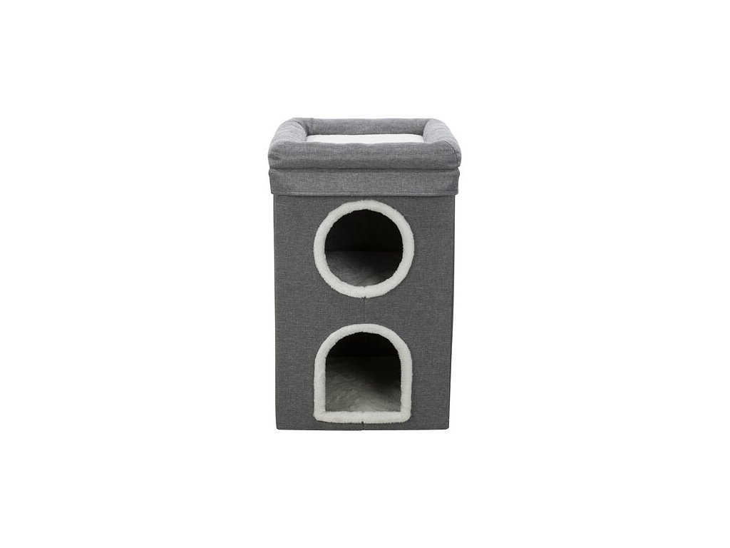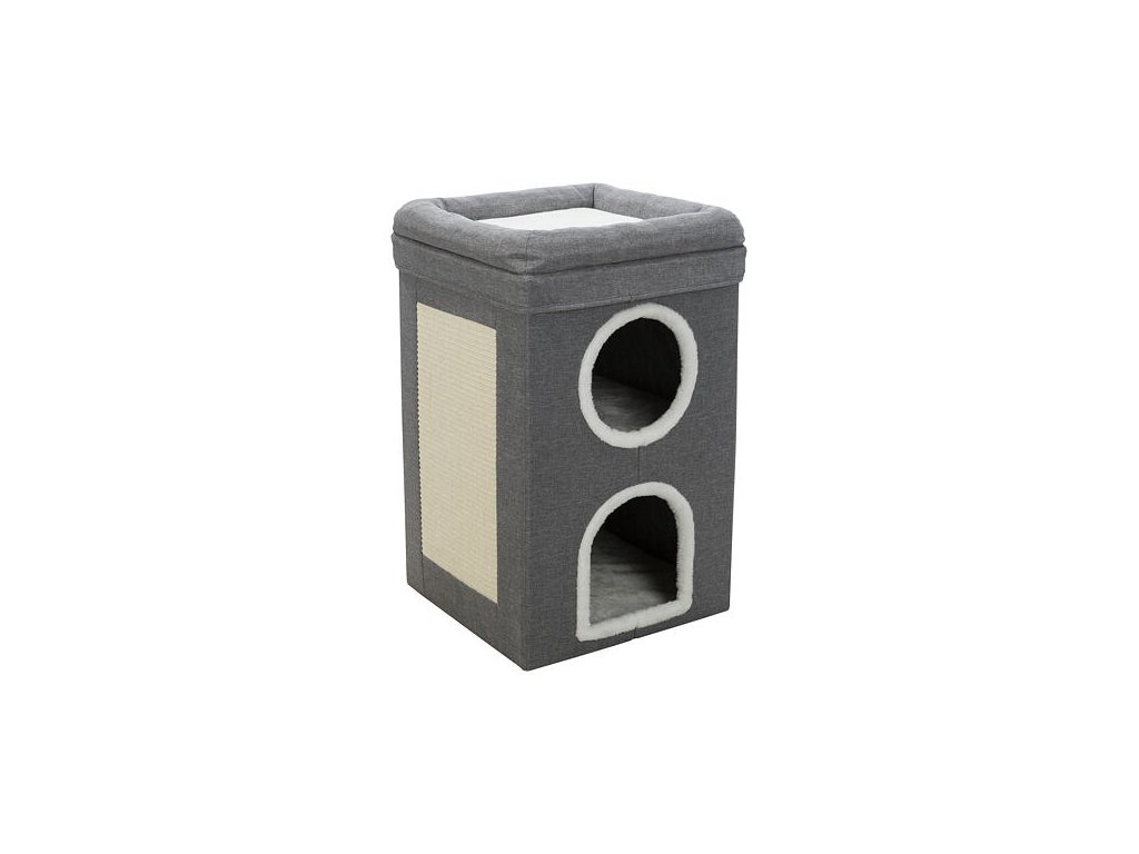 SAUL scratching post, square tower, 2 caves, 39x39x64cm, grey/white