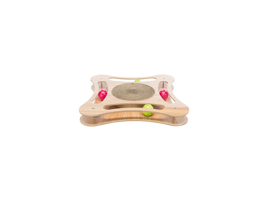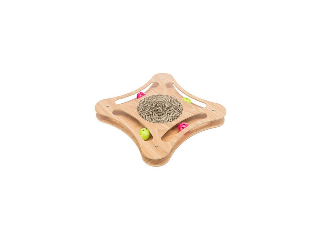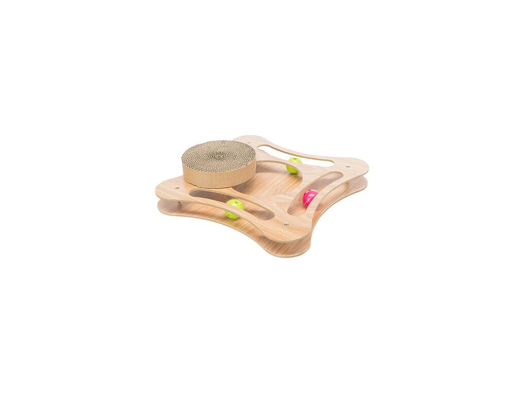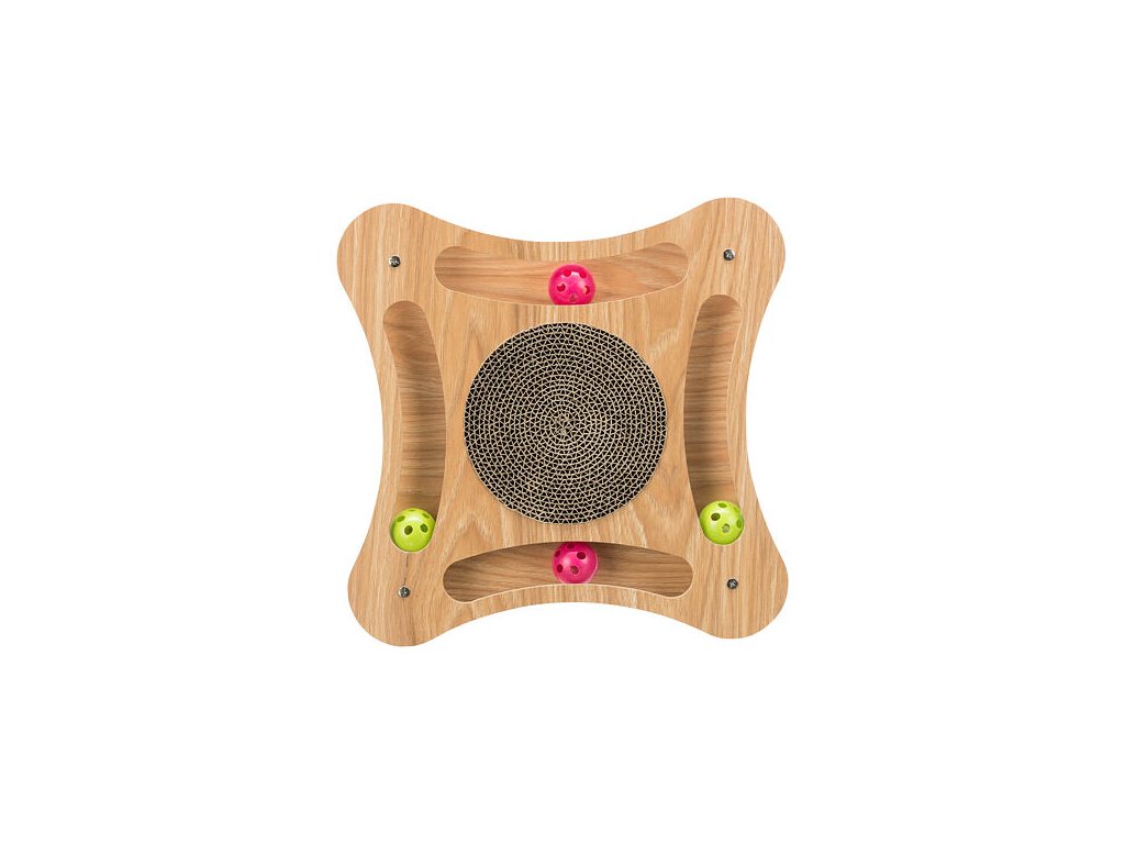 Scratching post in a wooden frame, with toys, 35 x 4 x 35 cm