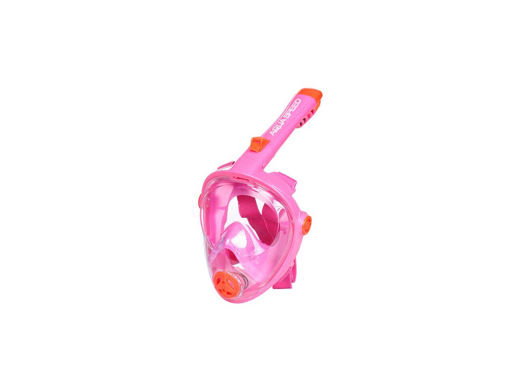The Aqua-Speed Spectra 2.0 KID diving mask offers a completely new view of the underwater world. The Spectra full-face mask will broaden your horizons when snorkeling or diving at shallow depths (when descending to greater depths, it is necessary to equalize the pressure in the ears, which is not possible in a full-face mask due to insufficient access to the nose). The construction of the Spectra 2.0 KID mask is also suitable for those divers who find traditional diving goggles and a snorkel uncomfortable or even cannot use them at all. The Spectra mask consists of a plastic structure, which includes a seal made of high-quality anti-allergenic silicone rubber (LSR). The mask's shape and features allow for a comfortable fit to many face sizes and shapes. Two wide, length-adjustable rubber bands are used for precise seating and sealing. The mask also includes five valves. Two side valves at the level of the eyes help the air flow, two valves at the level of the nose serve to minimize fogging of the visor and the valve located at the lowest point of the mask is then intended for exhalation. It also serves to drain water in the event that water does end up inside the mask for some reason. Here, all you have to do is raise your head above the surface or exhale vigorously directly in the water, and the unwanted water will drain away. An undistorted view is ensured by a construction with minimal internal volume and a slightly tinted visor made of high-quality durable polycarbonate against sunlight. A snorkel with a wide cross-section takes care of the supply of a sufficient amount of air and the subsequent removal of air. It is equipped at its end with the Ultra-Dry system, which prevents water from entering the breathing tube. The snorkel can be easily folded, which allows for easier transport and storage. The Spectra 2.0 KID mask is packed in a mesh drawstring bag. How to choose the right size Aqua-Speed Spectra diving mask? This model is available in two sizes. If you do not have the opportunity to try on the mask before buying, use the following method to measure the size of your face: Close your mouth and measure the distance between the edge of the chin and the eyebrow. If the distance is less than 12cm, choose size S. If the distance is greater, choose size L.Additional parameters