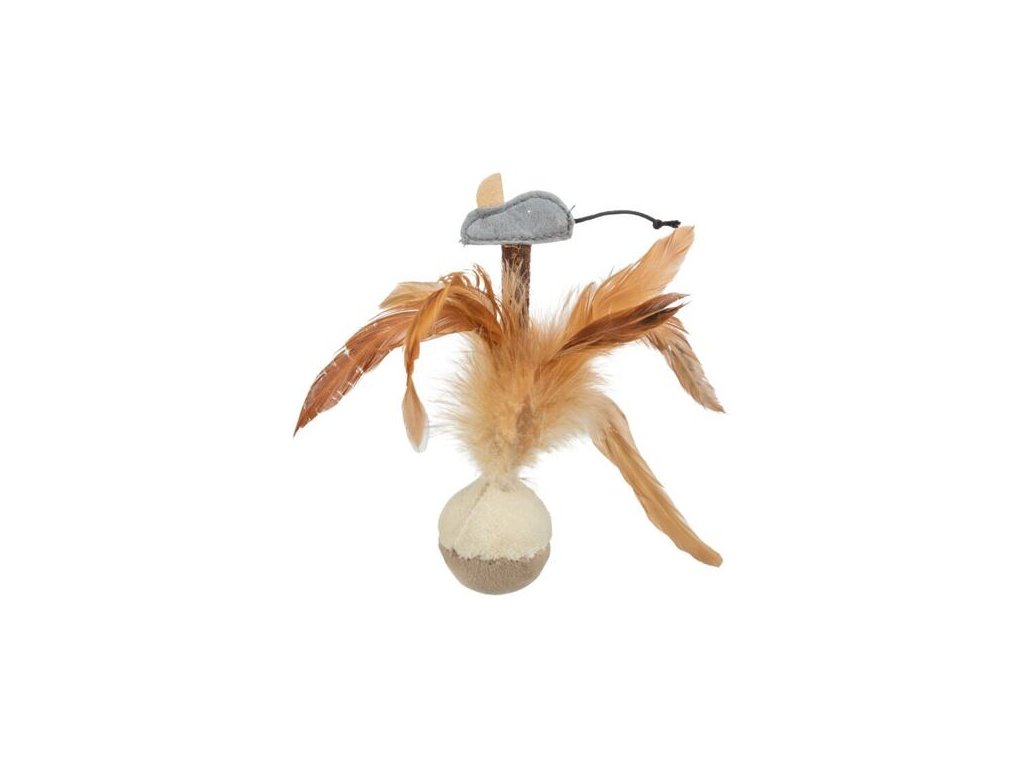 Squeaky ball with feathers and mouse 15 cm (RP 0.90 CZK)