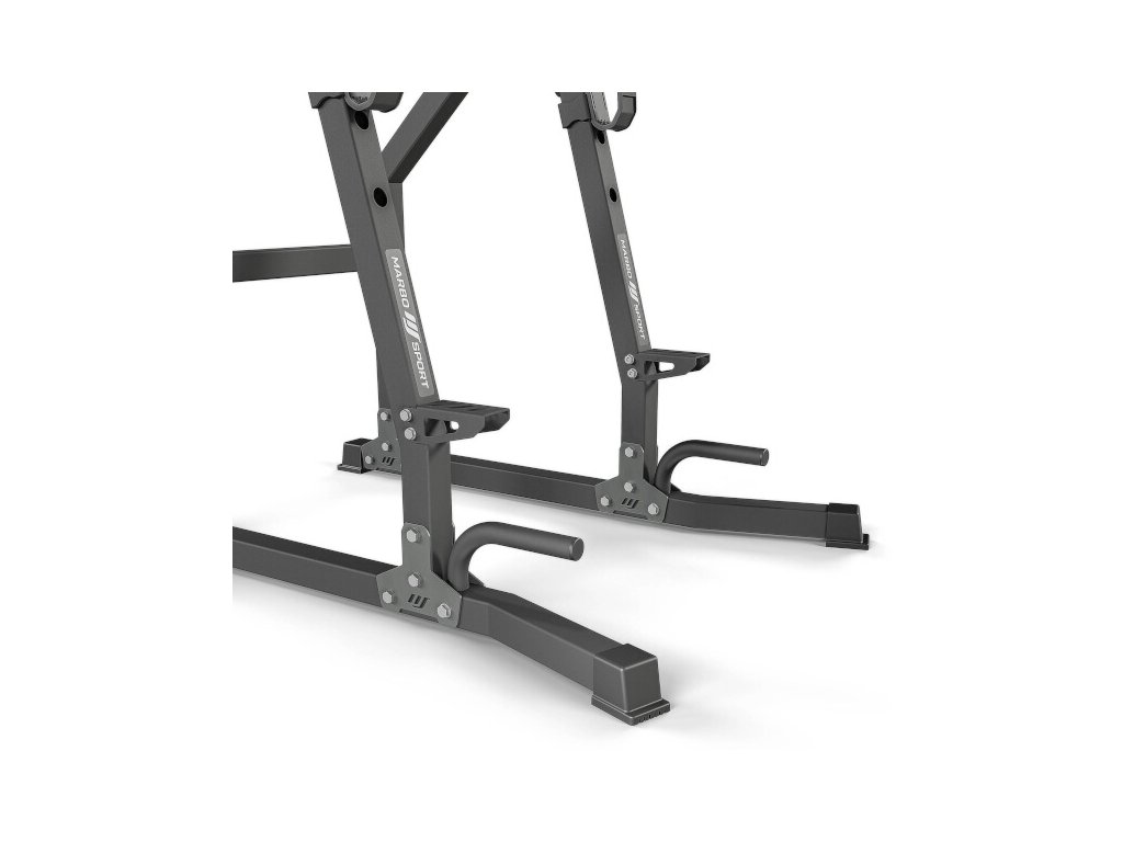 The structure of the MS-U110 2.0 is equipped with hooks that allow you to conveniently put it down barbell to the optimal height for the currently performed exercise and at the same time get a better starting position for the next set. The hooks can be adjusted to 9 levels ranging from 51 to 141 cm from the ground. Whether you train bench press, barbell squats or deadlifts, you will be able to conveniently put the barbell down after each exercise. additional handles that allow you to practice deep push-ups.