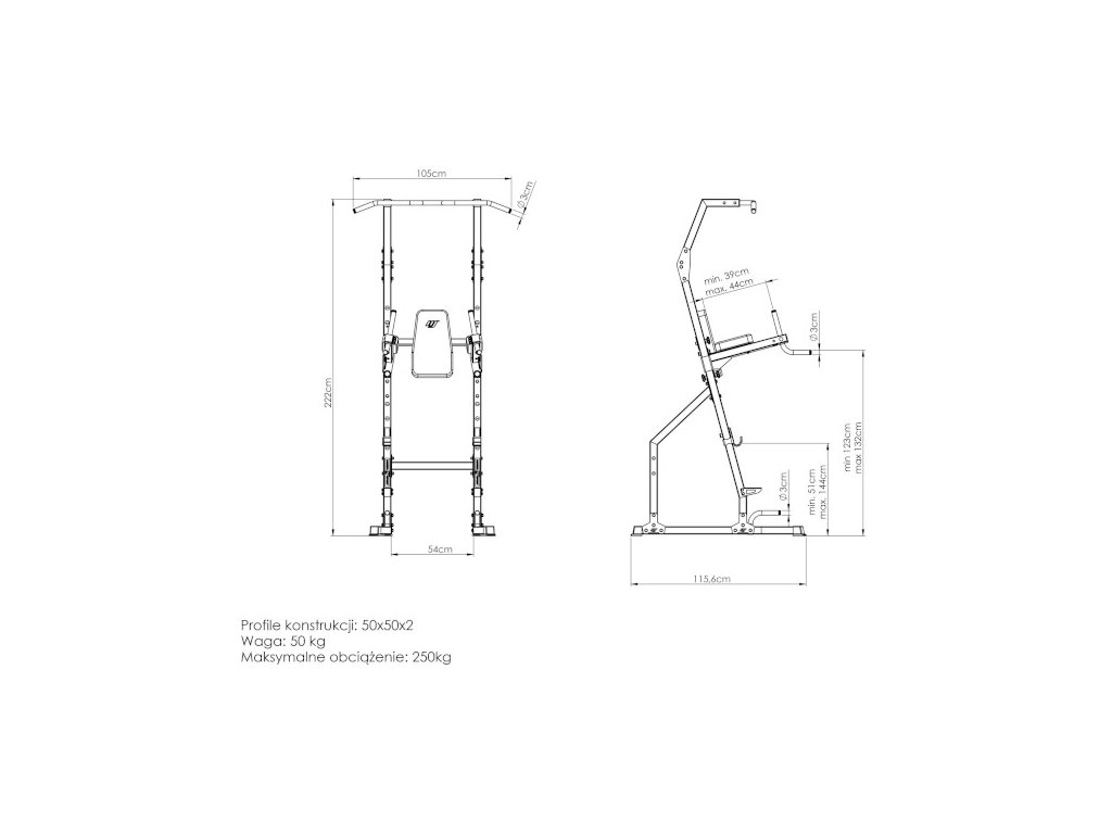 Develop your strength and shape the muscles of the upper half bodies using adjustable handles for DIPs. Ergonomic handles with a non-slip surface guarantee a secure grip even during intensive training. The height of the handles can be comfortably adjusted to 2 positions according to the height of the exerciser - 123 and 132 cm from the ground.