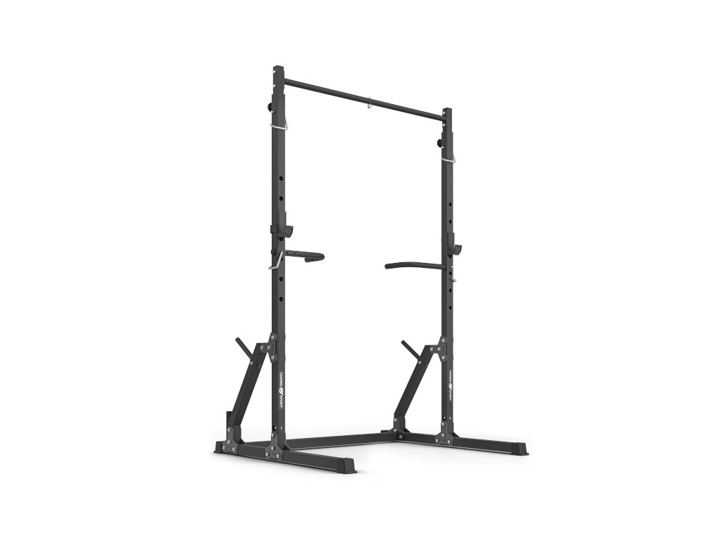 Handle supports have a diameter of 3 centimeters and can be placed in 2 levels. The 1st position at a height of 105 centimeters enables the training of dips, the 2nd position at a height of 17 centimeters allows the training of deep push-ups. Each support is equipped with 3 holes for adjusting the spacing (a total of 5 width settings ranging from 56 to 74 cm). Securing the supports is done using a steel securing pin.