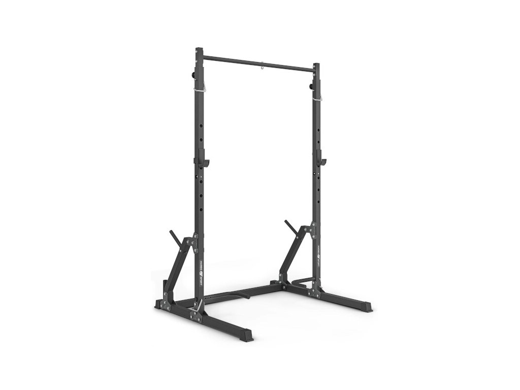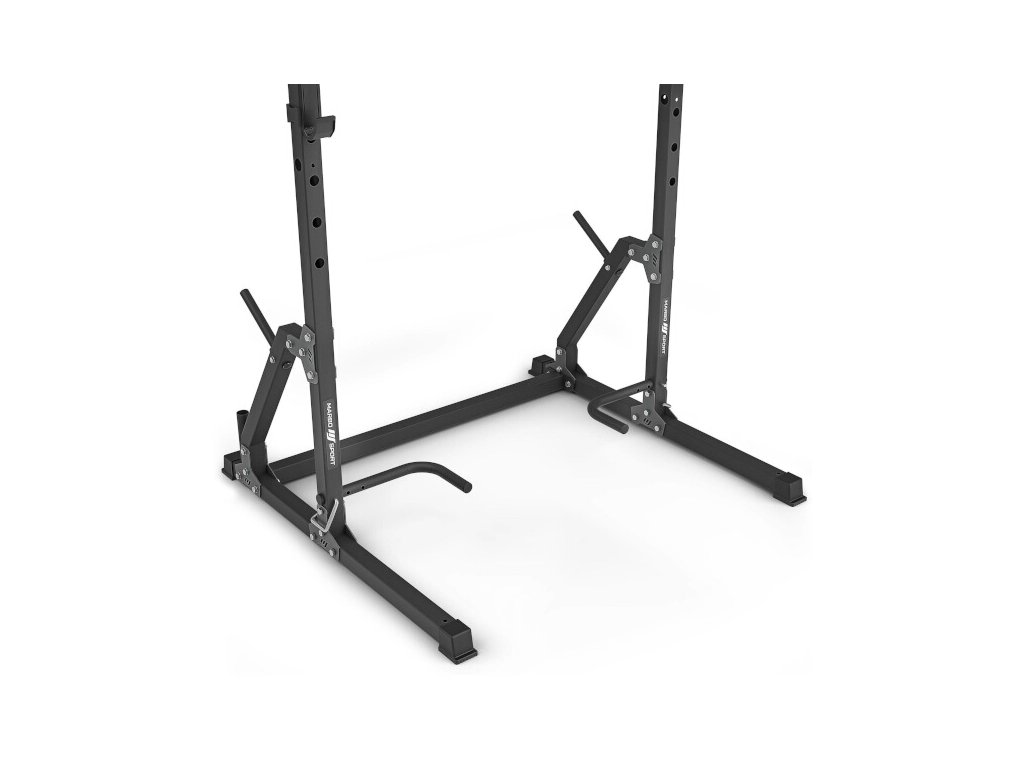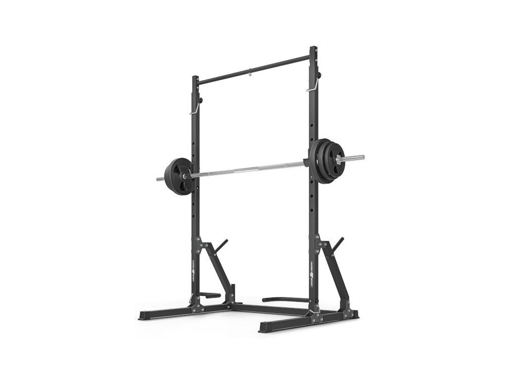 On the back of the frame there are spikes that serve as a stand for putting down weights, the spikes are 19 centimeters long and 2.5 cm in diameter. At the same time, suspended weights increase the stability of the structure if it is not anchored to the floor. Under the left strut you will also find an axle stand with a loading part diameter of 30 millimeters.