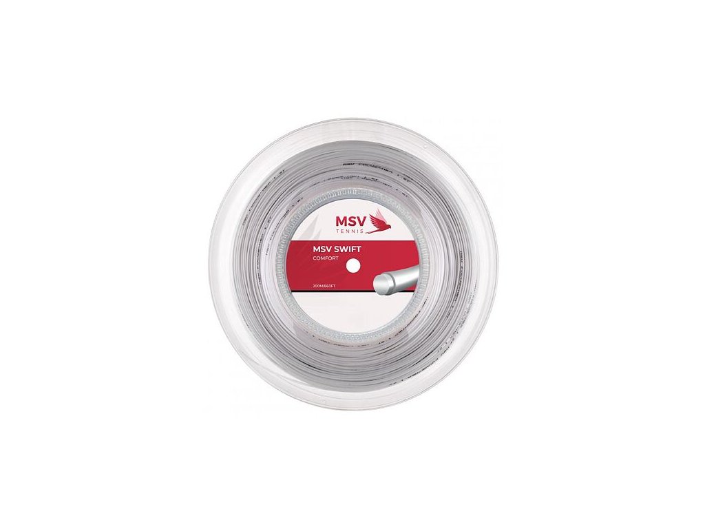 The MSV Swift tennis string is an absolute novelty of this brand. It is ideal for those players looking for a well-balanced string that is gentle on the hand. A complex blend of 6 different materials is processed in 3 steps to create a very soft monofilament string with a high level of comfort. Compared to other co-polyester strings with a similar property profile (e.g. Luxilon Alu Power), MSV SWIFT offers above average comfort (+10% points), tension stability (+8% points), power (5% points) and control (3 % points, all values from racketpedia.com). The absolute control value is 95%. The round shape makes the MSV SWIFT a good choice for hybrid strings. Advantages: The MSV Swift offers comparable flexibility to the MSV +38 but comparable control to the MSV Ultra hex under load. This string hides both the advantages of the more transverse MSV +38 and at the same time the great control of the MSV Ultra hex.Additional parameters