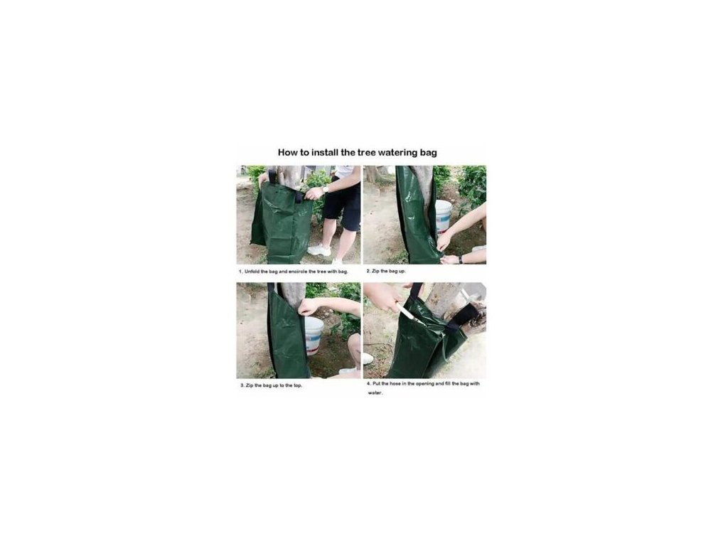 The Tree Bag 75L watering bag for a tree is a practical tool that every gardener will appreciate. The bag works on the principle of drip irrigation of the tree. At the bottom of the bag there are small holes through which the water is slowly released and irrigates the tree for 5-8 hours. Thanks to this, the water reaches the roots of the tree better. This bag has a capacity of 75 liters of water. You simply wrap it around the trunk, zip it up and pour water into the top opening (see picture 3). In addition, thanks to the bag, you protect the strains from the taste. The Tree Bag 75L is suitable for trees with a trunk diameter of up to 15 cm. Parameters: - material: PE tarpaulin - weight: 342 g/m2 - capacity: 75 l (20 gallons) - gradual watering for 5 - 8 hours - for trunks with a diameter of up to 15 cm - at the same time protects the trunk from tasteAdditional parameters