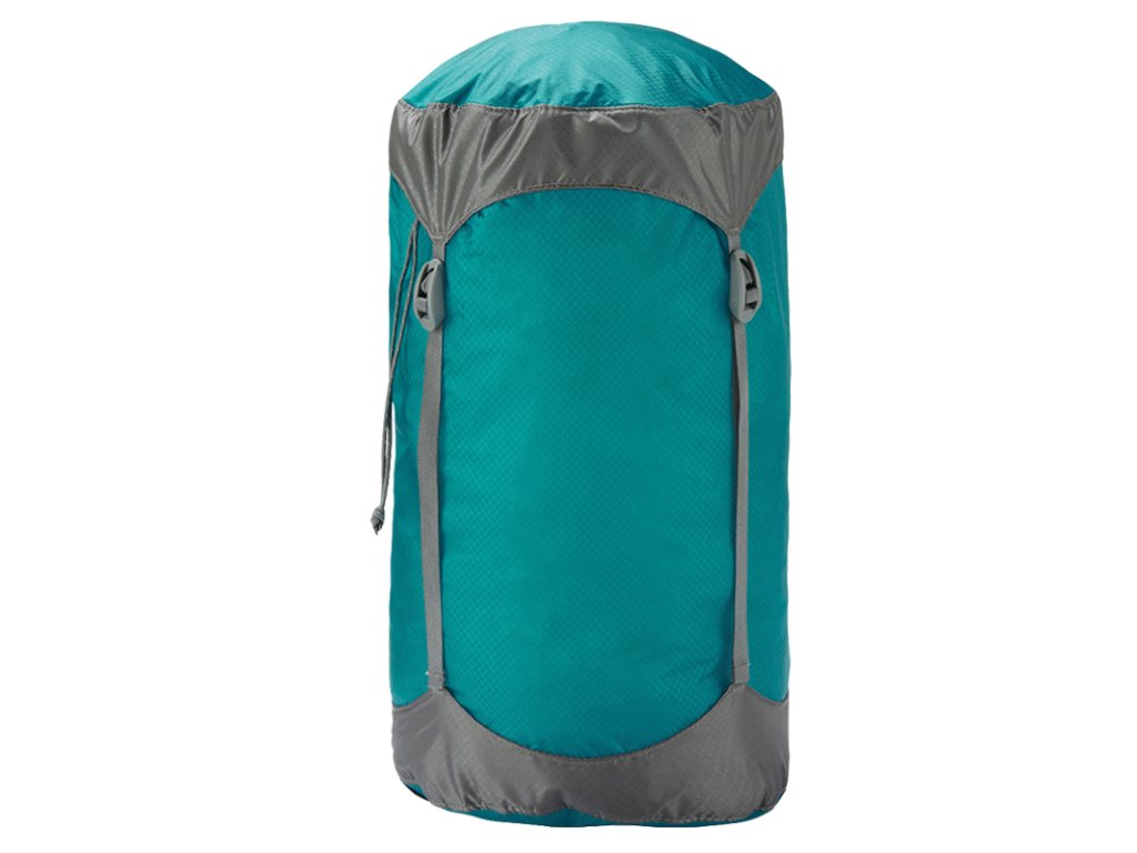 Compression packaging with four tightening straps. Made of strong, water-resistant nylon. Suitable for sleeping bags, down jackets and other bulky items. It reduces the original size by up to 2/3, making it an ideal packing aid. Capacity 22 liters. Drawstring.