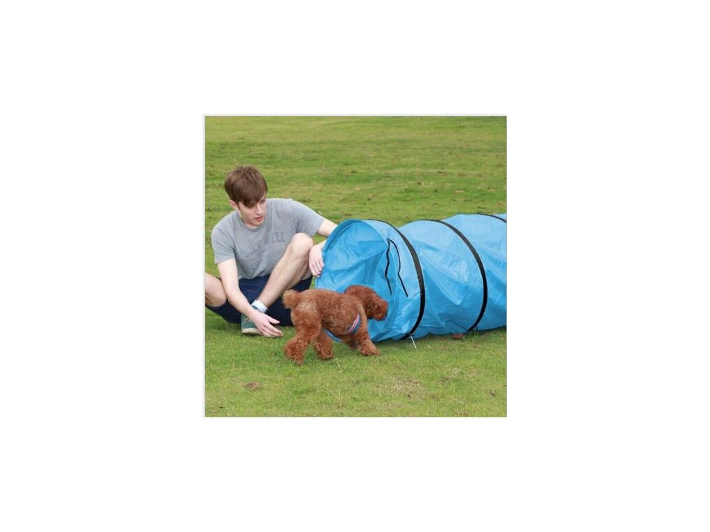 The Tunnel Tent crawling tunnel will provide children with a lot of safe fun, but it will also serve as an auxiliary obstacle for training dogs in preparation for agility competitions. The plain, azure blue tunnel is made of single-layer and breathable polyester fabric and embedded spiral wire. The lightweight fabric is easy to keep clean with a damp cloth. The length of the tunnel is either almost 300 cm or almost 520 cm with a weight of approx. 1.4 or approx. 2.3 kg depending on the preferred model. The Tunnel Tent is easy to unfold and pack in seconds in the corresponding travel bag. The Tunnel Tent is available in two different lengths with a uniform diameter of 60 cm. Each of the tunnels comes with a set of metal pegs for anchoring to the ground. Get the Tunnel Tent climbing frame for children or for your dogs and provide them with varied entertainment in the comfort of your home. Warning: Do not use the crawl tunnel on rough and rough surfaces such as concrete and pavement.Additional parameters