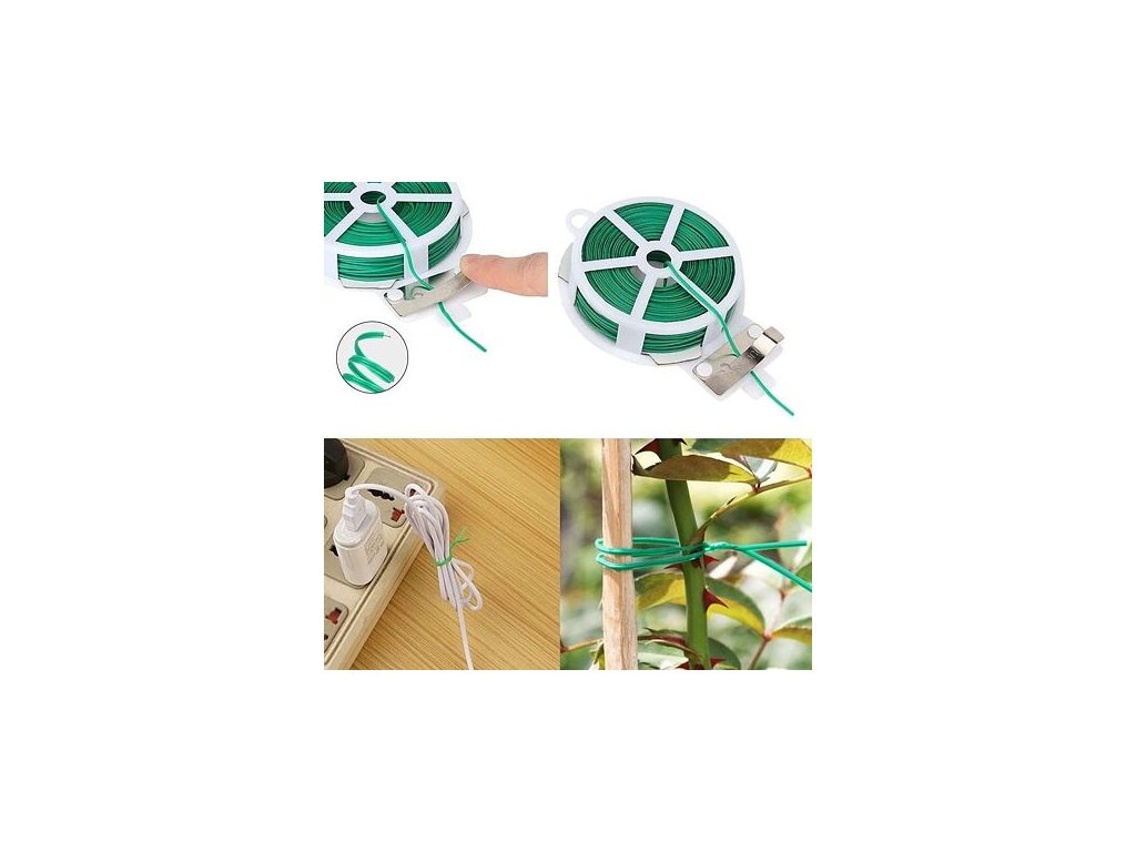 Merco Twist 50 tying wire is a practical tool for every gardener as well as a household accessory. The wire provides great support to the plants and has a protective PE layer to prevent them from being damaged. The durable wire is flexible and resistant to adverse weather conditions. It is suitable for growing vines, tomatoes, cucumbers, zucchini and other high-growing plants. You don't need any scissors or pliers to shorten the wire, thanks to the practical package with a mounted knife. However, you can also use the binding wire at home, for example, to tie up long cables. The length of the wire is 50 m and the thickness is 0.4 mm.Additional parameters