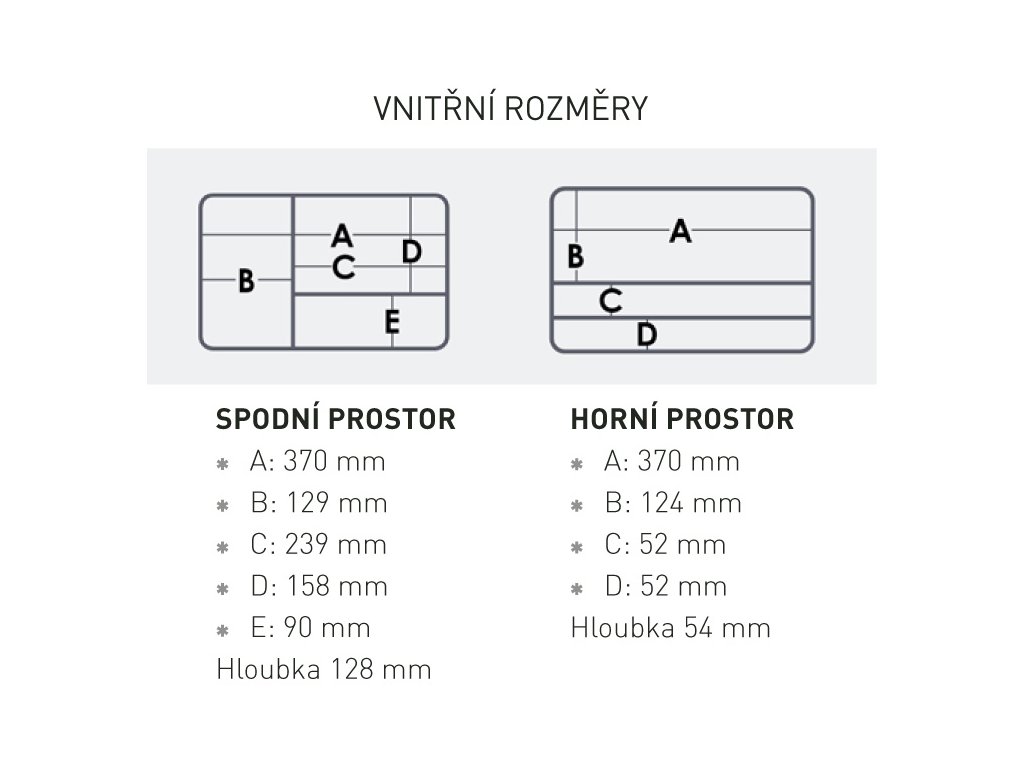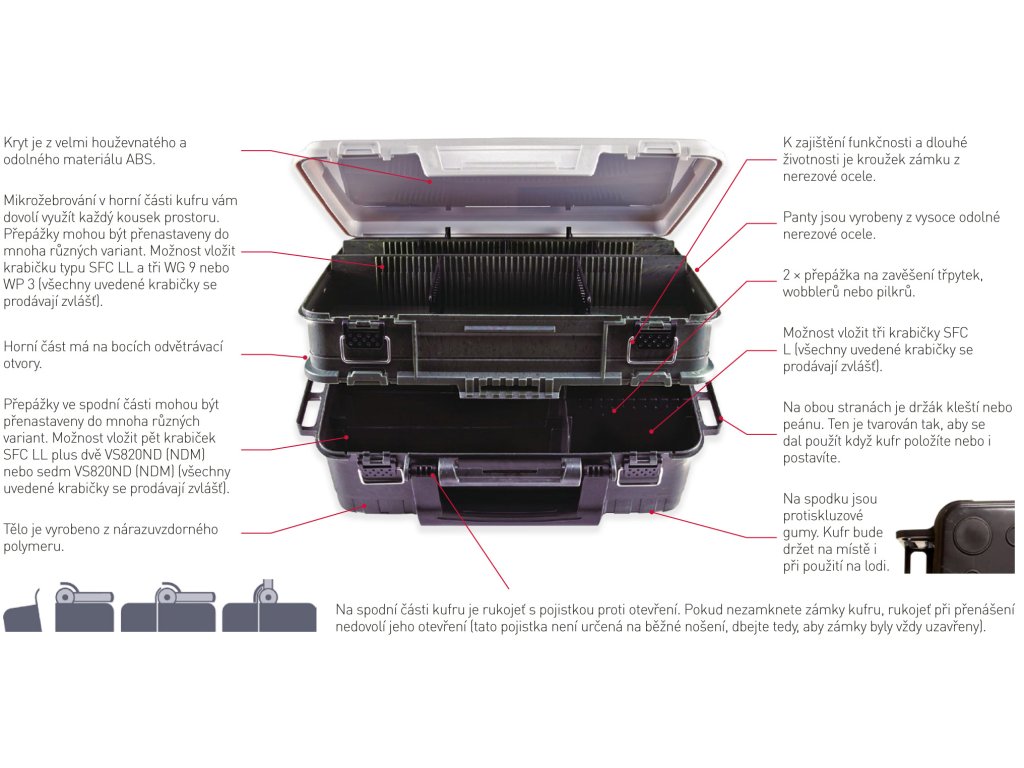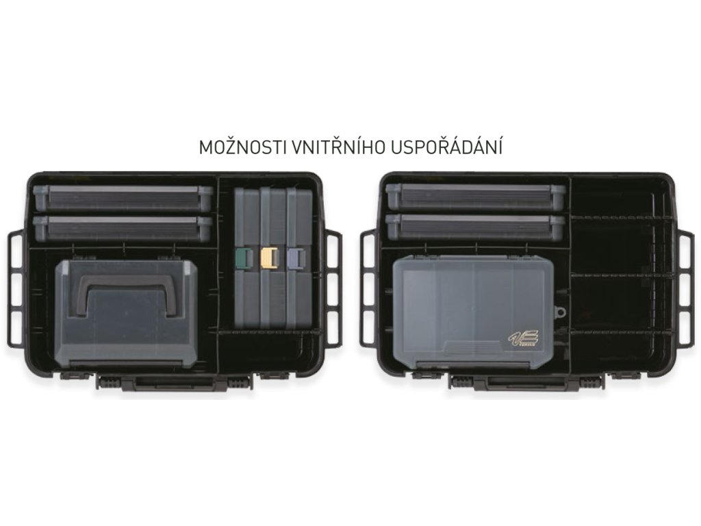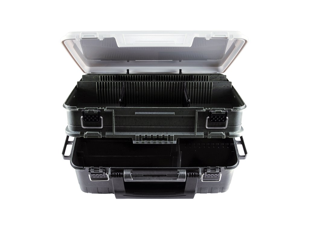 The cover is made of very tough and durable ABS material. Micro-ribbing in the upper part of the trunk allows you to use every bit of space. Partitions can be reconfigured into many different variations. Possibility to insert a SFC LL type box and three WG9 or WP 3. The upper part has ventilation holes on the sides. The partitions at the bottom can be adjusted to many different variations. The body is made of impact-resistant polymer. The lock ring is made of stainless steel to ensure functionality and longevity. The hinges are made of highly resistant stainless steel.Additional parameters
