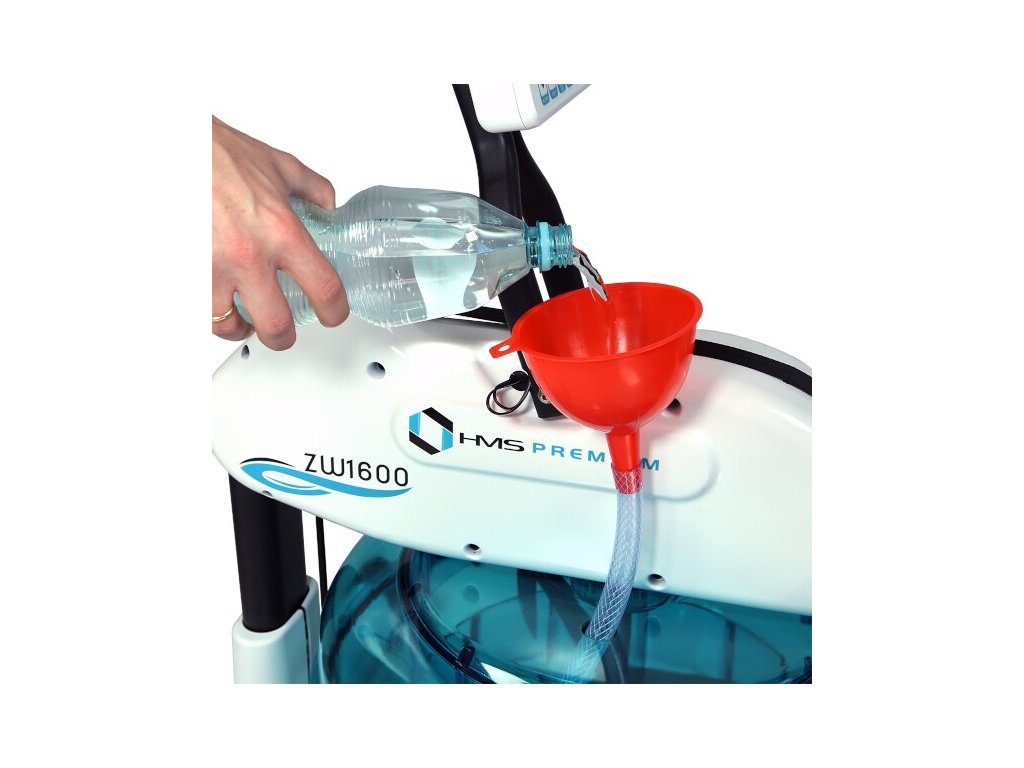 The water "rower" ZW1600 is equipped with a tank for filling with (ideally distilled) water. The height of its level determines the resistance during exercise. The paddles in the tank are at an ideal angle for maximum fluidity of movement. The mechanical sound of the resistance wheel in classic models is replaced by the pleasant sound of water in our ZW1600 machine. A funnel with a hose and a pump are included in the package to adjust the level.
