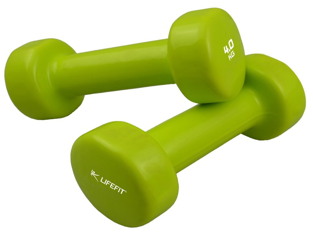 Vinyl dumbbells LIFEFIT 2 x 4 kg for strengthening exercises of the upper limbs and upper body. Vinyl dumbbells are used in aerobics and P-class and Bodystyling classes. Vinyl dumbbells LIFEFIT 2 x 4 kg are made of a metal core coated with pleasant vinyl. - steel core covered with vinyl - material resistant to moisture and sweat - made of material harmless to health - suitable for all types of aerobic exercises - weight: 2 x 4 kg - set includes 2 pieces of dumbbellsAdditional parameters