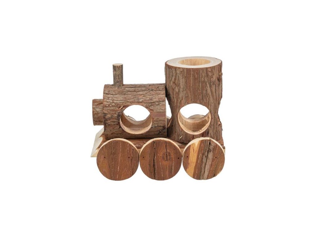 LEVIN train for mice, 17 x 14 x 12 cm, natural wood with bark