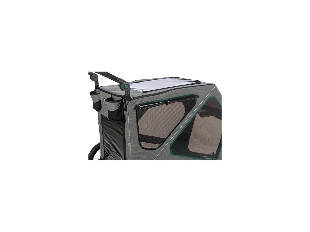 The robust dog trailer has a generous and spacious interior: thanks to the special shape with a high front part, it offers enough space even for large dogs for rainy weather, doesn't get wet - large mesh inserts can be partially covered in case of rain.
