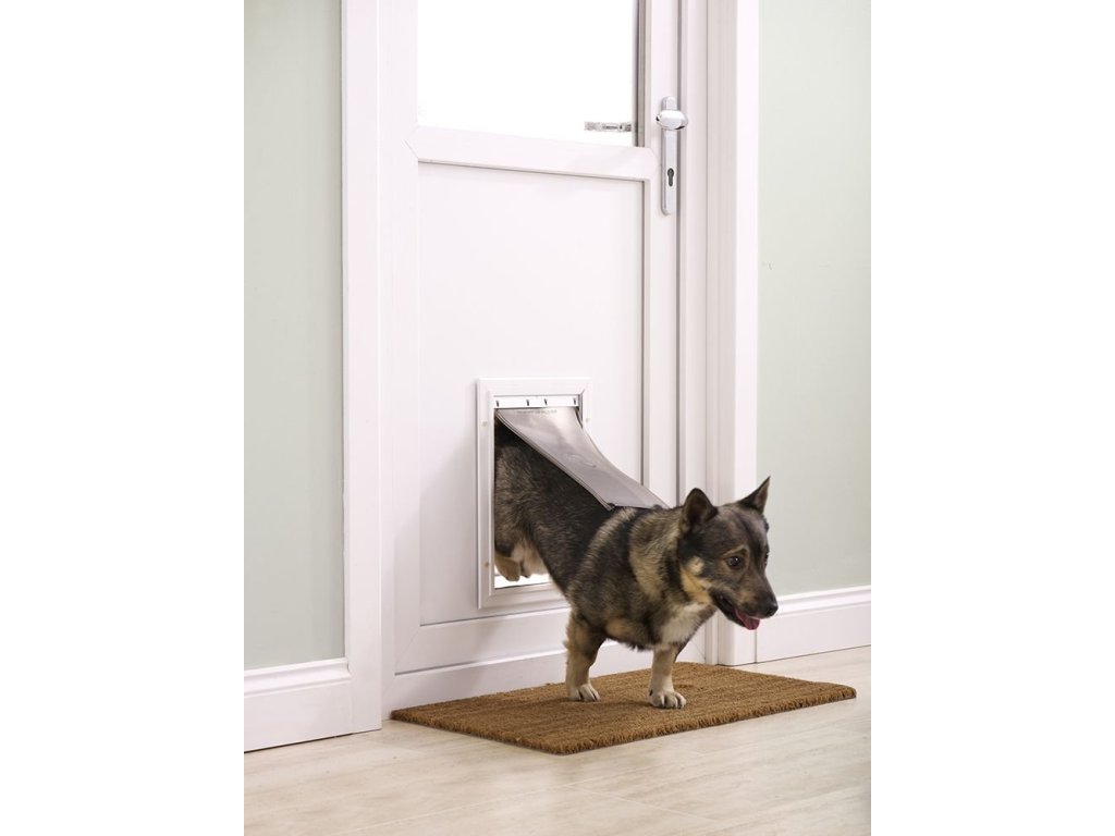 Classic "flying" door with internal retractable barrier. Suitable for pets weighing up to 7 kg.