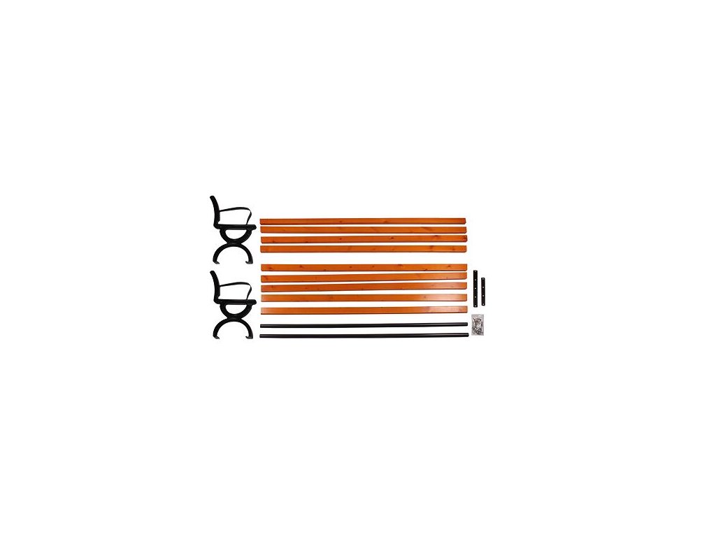 Light and elegant bench with backrest for outdoor and indoor use. Suitable for pleasant sitting in the garden, balcony, terrace, but also great as a resting place for athletes near the playground or court. The metal, black lacquered sides are treated with an anti-corrosion treatment, the slats made of solid camphor wood are treated with a basic impregnation, and on the outside the seat and support parts are painted with a glossy exterior varnish. We deliver the bench in a disassembled state. Installation instructions for download on the right next to the product description and in the instructional video. If interested, it is possible to deliver the bench already assembled for an additional charge of CZK 500. Warning: The surface of the wood is not resistant to long-term weather effects such as more permanent rain or frost. If the bench will be placed outdoors for a long time, we recommend treating it with another special exterior paint. Parameters: - overall dimensions of the bench: length x width x height: 152 x 50 x 72 cm - net dimensions of the seating surface, length x width: 142 x 36 cm - net dimensions of the support surface: length x width: 142 x 30 cm - seat height surface area from the ground: 38 cm - height of the back part from the ground: 72 cm - dimensions of the wooden slats: length x width x height: 145 x 6 x 2.7 cm - dimensions of the metal sides: width x height x thickness: 50 x 72 x 3 cm - weight: 15 kg - load capacity 250 kgAdditional parameters