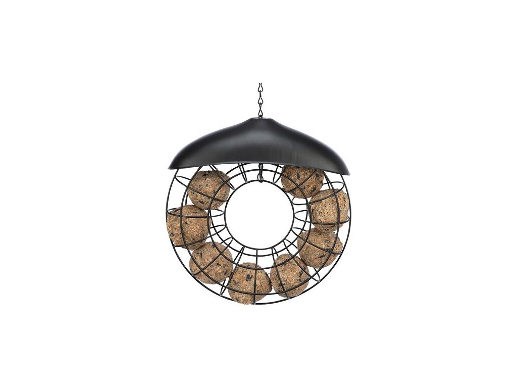 with removable roof, rope for suspension, 4 landing perches at the feeding holes, material: lacquered metal,...