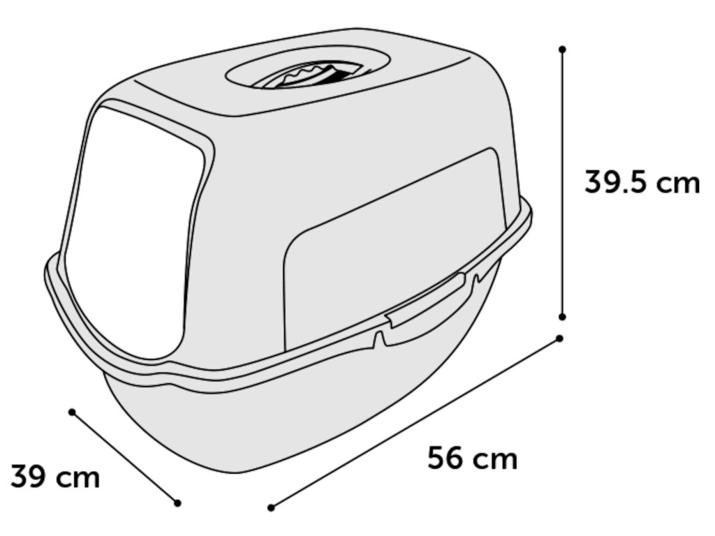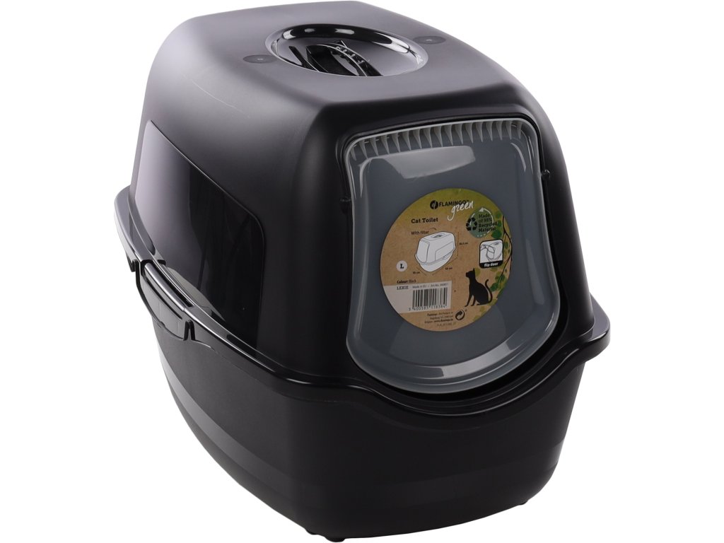 Recyklovatelná kočičí toaleta vyrobena z 98 % z recyklovaného plastu. Dodává se s vyměnitelným uhlíkovým filtrem, který pohlcuje nepříjemné pachy. Snadno se přemisťuje pomocí rukojeti a díky zaobleným rohům se snadno čistí. Toaleta má odnímatelné víko s výklopnými dvířky.