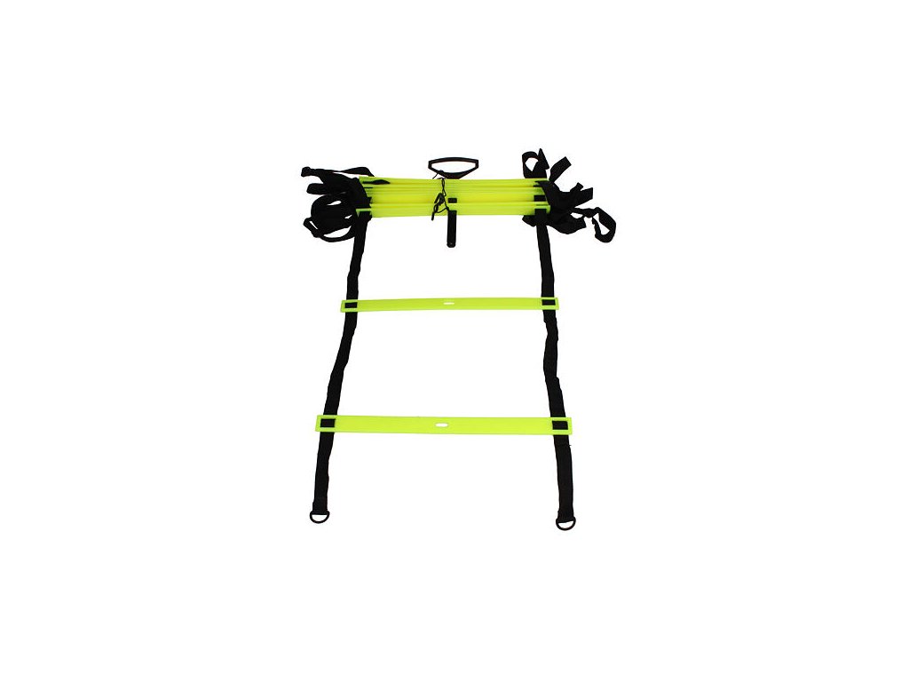 Agility žebřík je trenérská pomůcka s příčkami k procvičování koordinace, zvýšení kondice a rychlosti sportovců. Plastové příčky žebříku jsou snadno nastavitelné pro přizpůsobení jednotlivých vzdáleností mezi nimi, podle potřeb uživatele. Unikátním vylepšením je madlo, které je možné protáhnout středem žebříku. Madlo pak slouží nejen jako nosič, ale zabraňuje i zamotání žebříku. Tento model je nabízen v rozměru 4,5 a 9 m a dodáván společně s obalem. Upozornění: Agility žebříky neslouží v žádném případě k lezení, nýbrž ke cvičení techniky a rychlosti sportovců na zemi.Doplňkové parametry