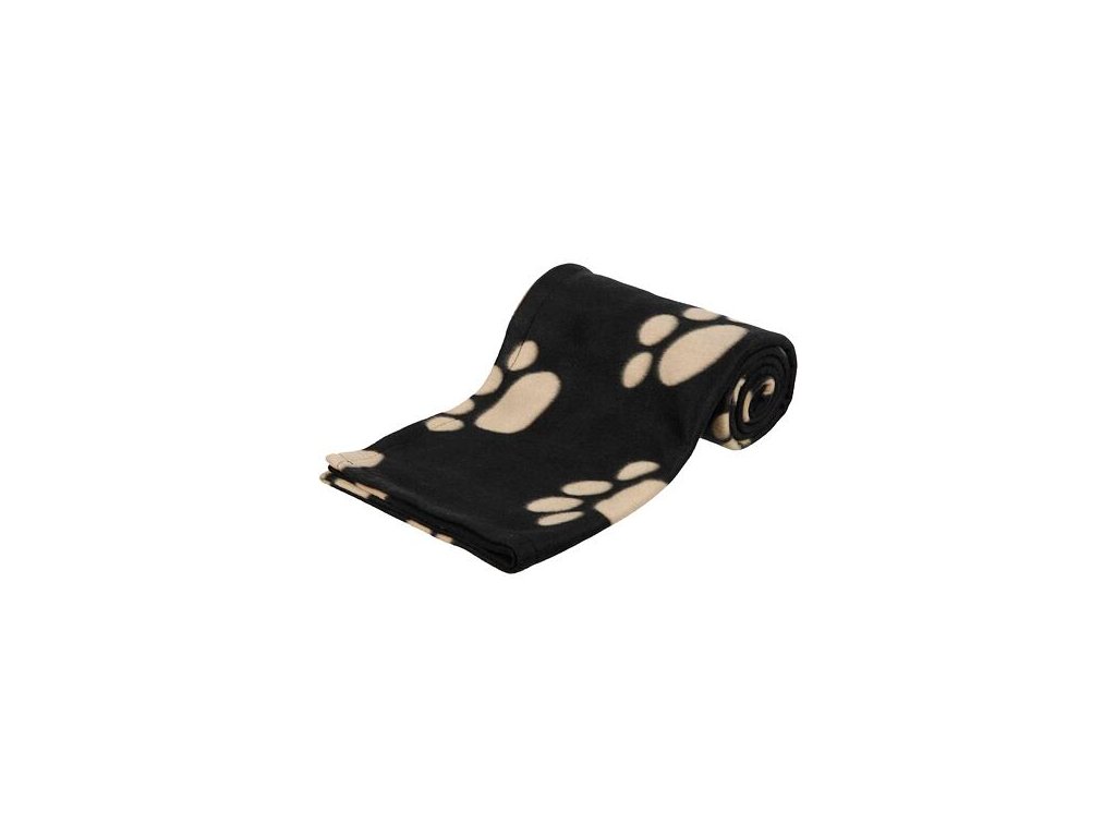 Flísová deka BARNEY 150x100cm - černá s béžovými tlapkami