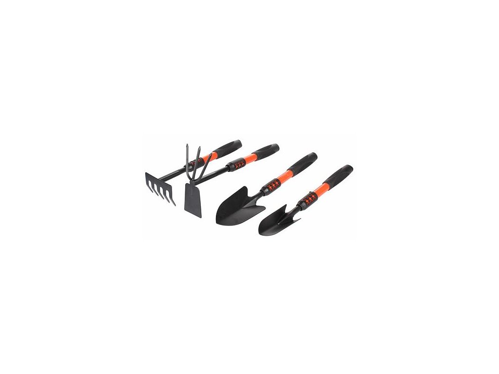 Každý poctivý zahrádkář potřebuje ke své práci správné nářadí. Pro tyto zahrádkáře nabízíme praktický set Garden Kit. Tato 4-dílná sada zahrnuje širokou lopatku, úzkou lopatku, pětizubé hrabičky a oboustrannou motyčku. Nářadí je vyrobené ze středně uhlíkové oceli s gumovou rukojetí. Délka jednotlivého nářadí se pohybuje od 36 do 45 cm a hmotnost od 0,27 do 0,36 kg. Přidejte si do své kůlny sadu zahradního nářadí Garden Kit a ulehčete si tak svou práci.Doplňkové parametry