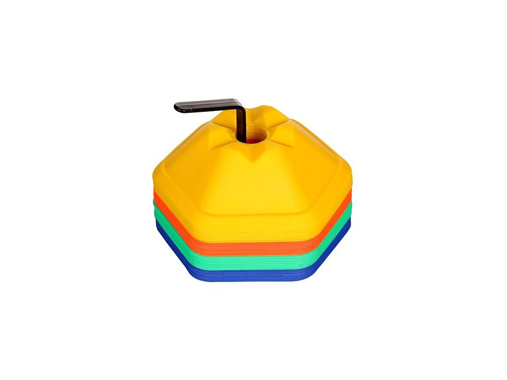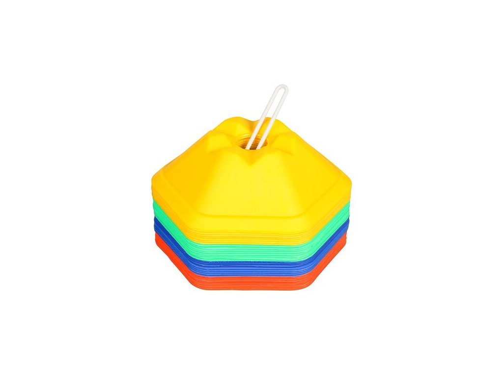 Multifunkční vytyčovací mety Merco Hex Marker 2in jsou praktickou pomůckou trenérů různých sportovních odvětví. Mety slouží k vyznačení tréninkové plochy a vytvoření agility překážek ve spojení s plastovými tyčemi s průměrem 30 mm. Mety jsou vyrobené z odolného plastu a díky použitým barvám jsou dobře viditelné. Balení obsahuje stojan (plastový nebo kovový) s 32 kusy met, které jsou rovnoměrně rozděleny do 4 barev. Výška jedné mety je 5 cm, spodní průměr je 17,5 cm a průměr středního otvoru je 3 cm.Doplňkové parametry
