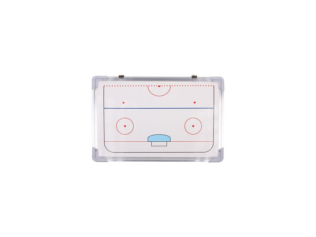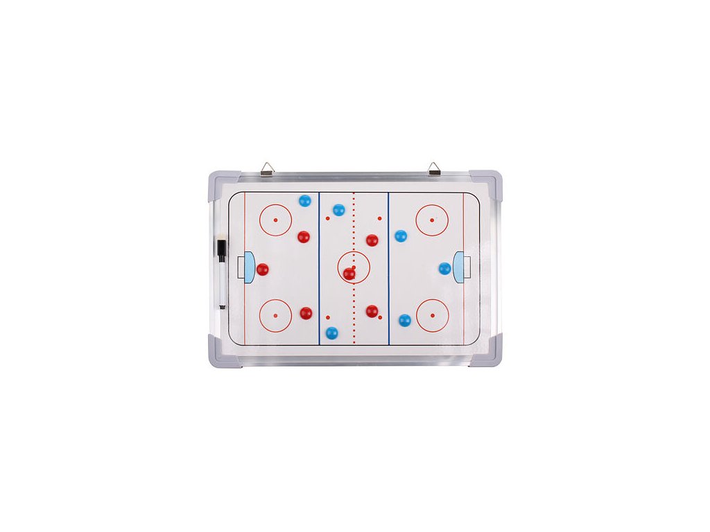 Trenérská tabule na hokej je nezbytný doplněk každého hokejového trenéra napříč všemi soutěžemi. Taktická hokejová tabule Merco HOKEJ 43 je oboustranná magnetická deska s barevným provedením poloviny z jedné strany a z druhé strany celého hokejového hřiště v hliníkovém rámu. Součástí hokejové tabule Merco HOKEJ 43 je 6+6 barevně rozlišených magnetů, samolepky s čísly a černý popisovač jehož součástí je i malá houbička. Závěsná trenérská tabule Merco HOKEJ 43 je ideální pomocník pro taktické porady v hokejové šatně. Celkový rozměr této tabule je 45,5 x 30,5 cm a celková hmotnost 650 g.Doplňkové parametry