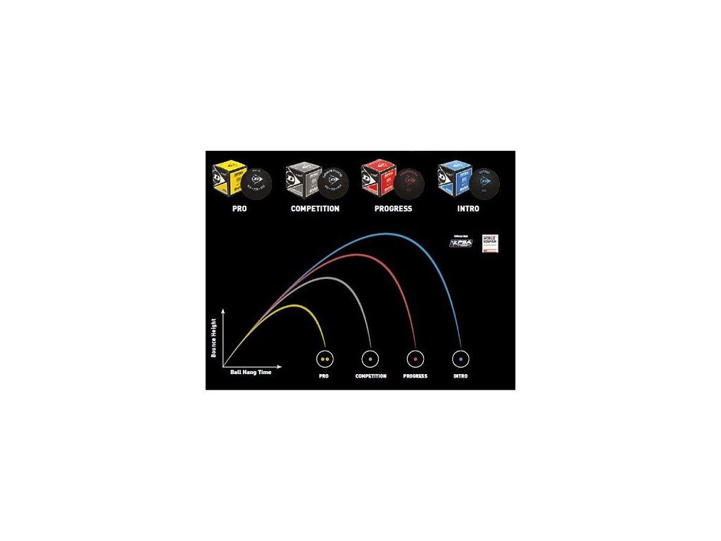 Squashový míček Dunlop Intro absorbuje 40% méně odrazové energie. Hmotnost míčku je ideální na udržení ve hře, jelikož je o 12% větší, než u míčků pro standartní profesionální hráče. Tento typ míčku se hodí k nacvičování a zlepšování úderů. Své využití najde jak u dívek, tak i u chlapců. Pokročilejší hráči v něm mouhou najít zalíbení u nácviku složitějších úderů.Doplňkové parametry