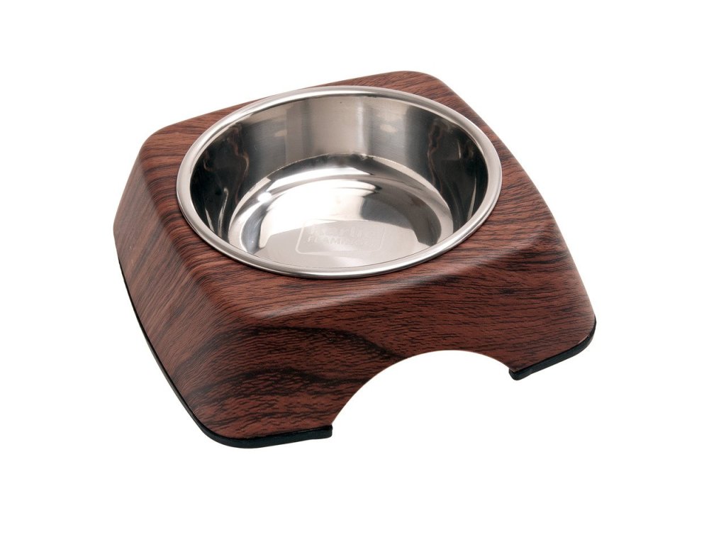 Karlie-Flamingo Miska nerez v dřevěném stojánku 160ml, palisandr