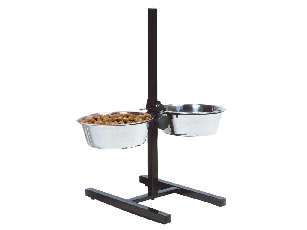 Praktický stojan včetně nerezových misek, který si můžete libovolně nastavit podle velikosti vašeho zvířete. Váš domácí mazlíček zajisté ocení, že se u krmení nemusí hrbit a krčit.