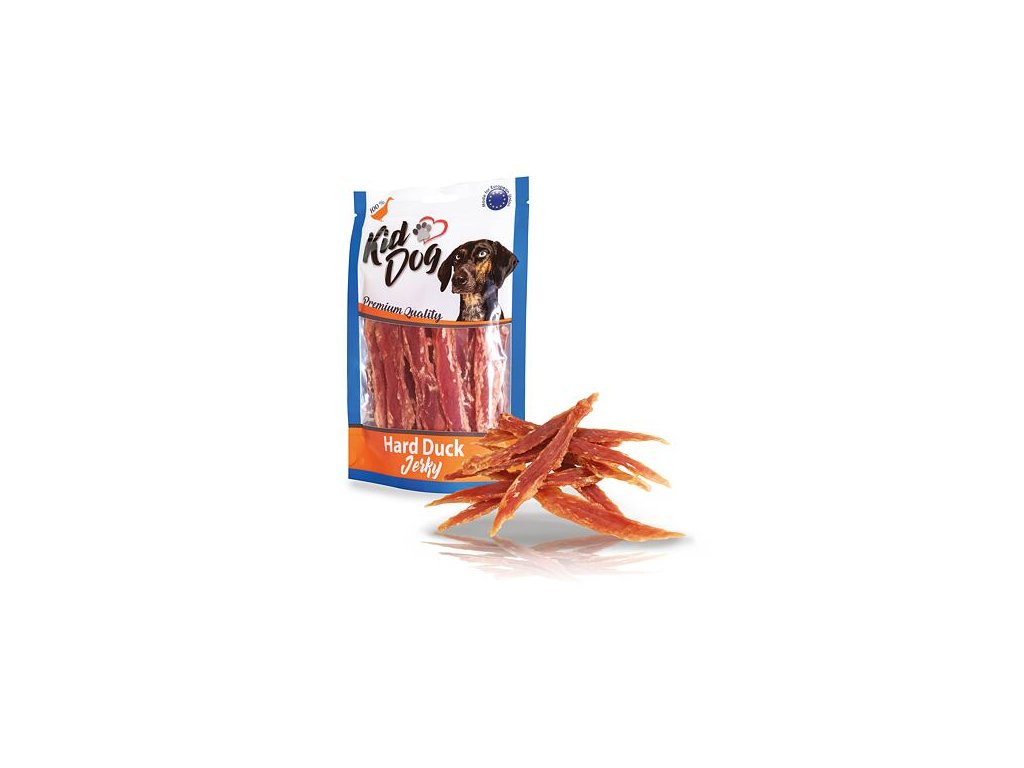 Šetrně pomalu sušené kachní prsní filety vyrobené jen ze 100 % čerstvého kachního masa. S nízkým obsahem tuku (max.3 %) jsou vynikající odměnou pro všechna plemena psů, všech věkových kategorií. Pro svoji přirozenou vůni, poloměkkou konzistenci a tvar fungují jako ideální dentální snack.