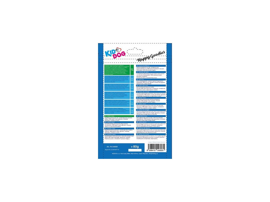 - složení: 90 % králičí maso, glycerin, minerály, sorbitol