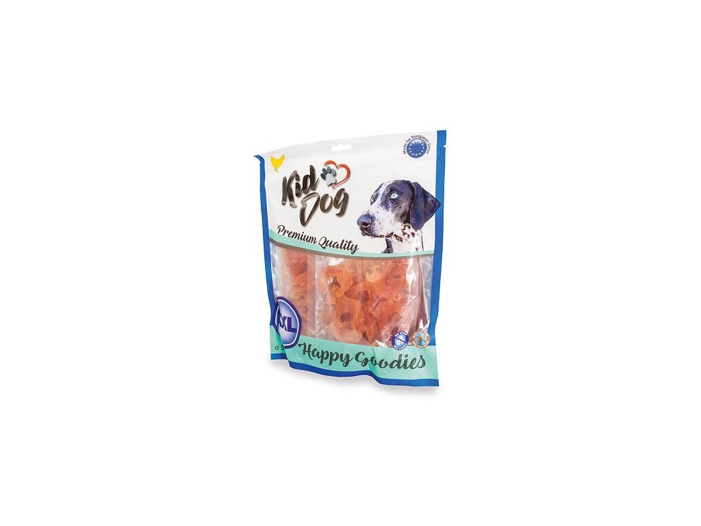 Kiddog Premium Snack z kuřecího masa jsou velmi měkkou odměnou. Mají masitou chuť kuřecího a neobsahují žádné obiloviny a cukr. Disponují vysokým obsahem živočišných bílkovin a masa. Jsou lehce kousatelné, a tedy velmi dobrým doplňkem stravy. Vhodné pro výcvik středních a velkých plemen psů.