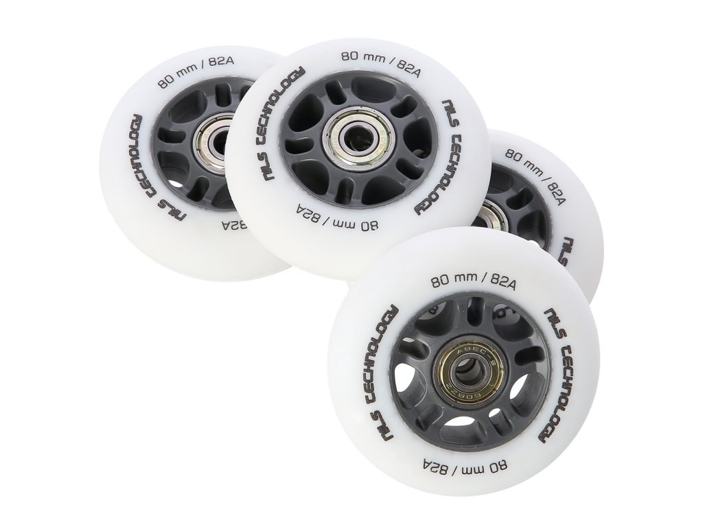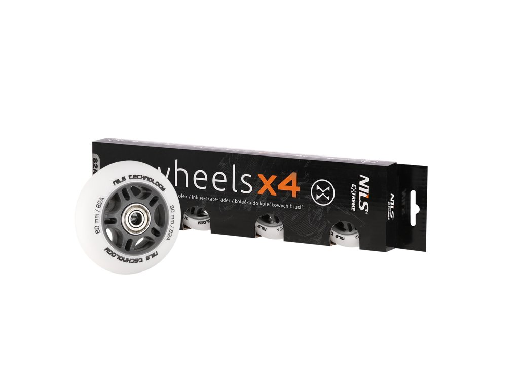 Matná kolečka NILS Extreme PU 80x24 82A s ložisky ABEC 9, bílá, 4 ks