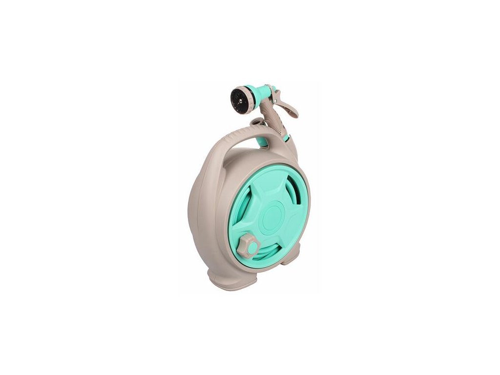 Kropení záhonů může být i zábava! Přenosný Mini Set zahradní pistole s navijákem vám ulehčí práci a pomůže od nošení těžkých konví s vodou. Malý přenosný set s rozměry 30 x 40 x 12 cm a hmotností 2,7 kg dokáže správně zavlažit zahradu nebo záhon. Nejen na zahrady, ale také s nečistotou na autě či kole si hravě poradí. Konstrukce setu je vyrobená z ABS plastu a hadice z PVC. Pogumované držadlo pistole zaručuje příjemné držení a otočná hlava určuje 6 režimů proudu vody. Pistoli jednoduše zacvaknete do hadice a druhou stranu do přívodu vody a můžete začít se zavlažováním. Ulehčete si práci s tímto přenosným zahradním Mini Setem. Parametry: délka hadice: 15 m materiál: ABS, PVC, PP hmotnost: 2,7 kgDoplňkové parametry